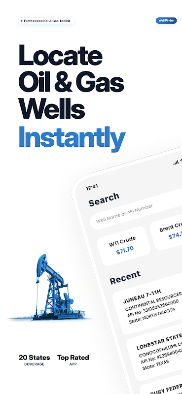 • ค้นหาบ่อน้ำมันใน 20 รัฐและค้นหาบ่อน้ำมันได้อย่างรวดเร็ว