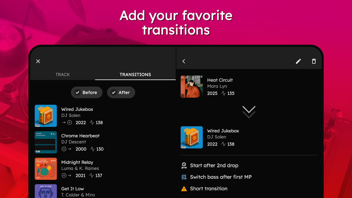 Wezeejay พร้อมที่จะเป็นความทรงจำทางดนตรีของคุณ ช่วยให้คุณค้นหาทรานซิชันโปรดได้ทันที ไม่ว่าคุณจะกำลังเตรียมตัวอยู่ที่บ้านหรือกำลังแสดงสด