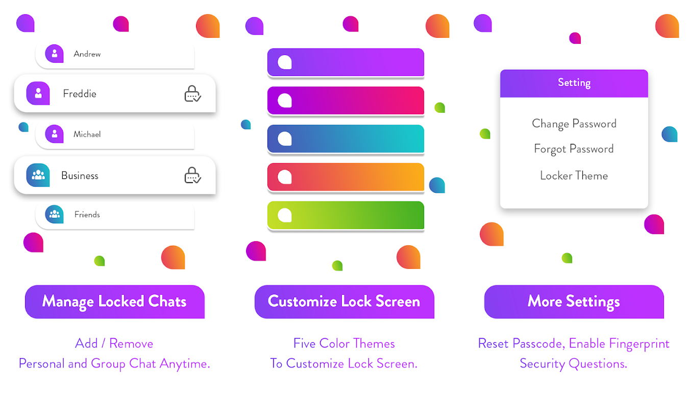 - Lock/Unlock personal chat as well as group chats with 4-digit password.