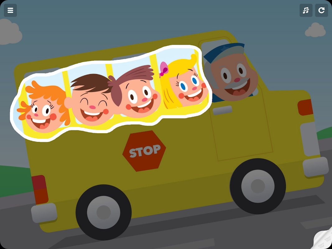 Tap the right part and sing along to 'Wheels on the Bus!'