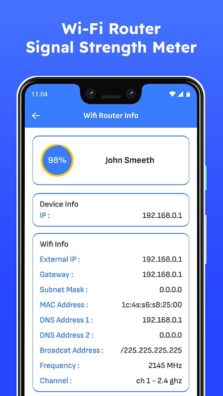 It is a useful WiFi Signal Strength Meter, the app can view your current wifi signal strength and detect WiFi Signal Strength around you in real-time.