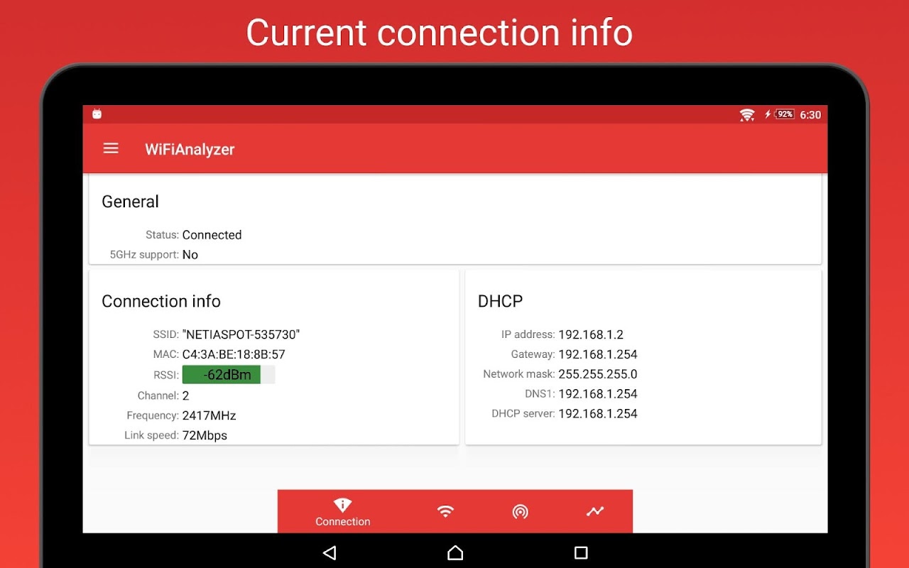 WiFi Analyzer เป็นแอปพลิเคชั่นที่สามารถแสดงรายละเอียด / สถิติเกี่ยวกับการเชื่อมต่อ WiFi ปัจจุบัน