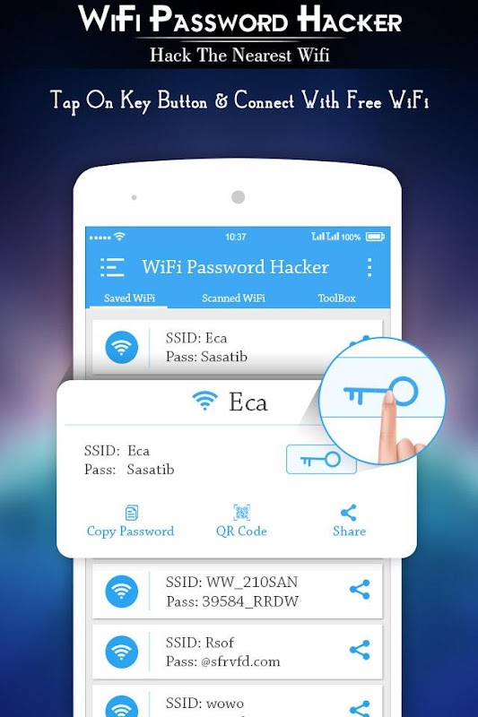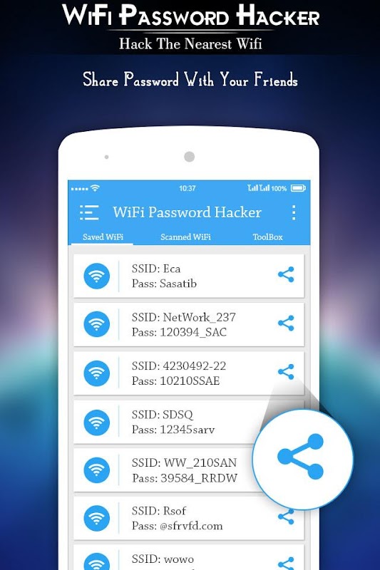 you can show your friends that Wifi Password hacker is a application that help you hack password of a wifi network. WiFi Password Hacker makes it look like you can hack any WiFi network.