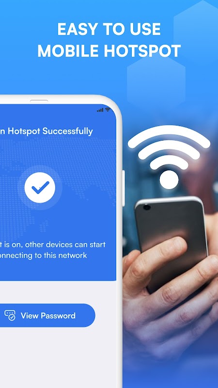 Wi-Fi Hotspot - Free Hotspot is an innovative app designed to turn your mobile device into a powerful internet sharing tool. With a simple tap, you can transform your smartphone or tablet into a secure Wi-Fi Hotspot, allowing you to share your device's internet connection with friends, family, or colleagues. Whether you're working remotely, traveling, or in an area without a reliable internet connection, Wifi Hotspot - Personal Hotspot ensures you stay connected at all times.