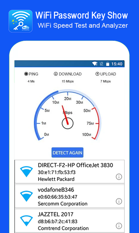 Wifi Password Show เป็นเครื่องมือที่มีประโยชน์ซึ่งช่วยให้คุณทำได้อย่างง่ายดายและสะดวก เพียงไม่กี่ขั้นตอน คุณสามารถดูรหัสรหัสผ่าน wifi ของคุณได้อย่างง่ายดาย และสามารถแบ่งปันรหัสผ่านของคุณกับเพื่อน ๆ ได้อย่างง่ายดาย ตัวจัดการ Wifi แสดงจุดเชื่อมต่อ WiFi ช่องรอบ ๆ ตัวคุณและความถี่ SSID และรหัสผ่าน wifi กู้คืนรหัสผ่านทั้งหมดของเครือข่ายที่เชื่อมต่อแบบไร้สายที่คุณเคยเชื่อมต่อด้วยความช่วยเหลือของมุมมองรหัสผ่าน wifi