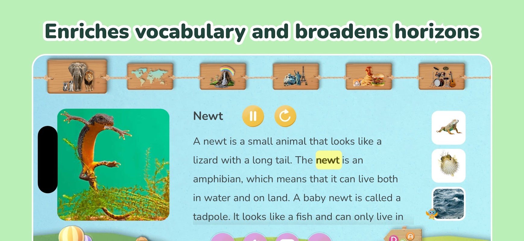 Wikids ส่งเสริมการสำรวจด้วยตนเองและเสริมสร้างความปรารถนาที่จะเรียนรู้ ช่วยขยายคลังคำศัพท์และสร้างความมั่นใจในตนเอง — โดยไม่มีแรงกดดันหรือการทดสอบ เพราะยิ่งเด็กรู้มากเท่าไหร่ พวกเขาก็ยิ่งอยากรู้มากขึ้นเท่านั้น