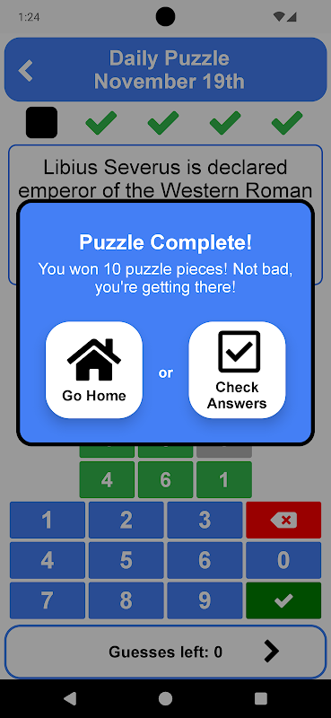 คุณสมบัติหลักของ WikiPuzzle คือปริศนาประจำวัน ทายปีสำหรับแต่ละเหตุการณ์ 5 เหตุการณ์ที่เกิดขึ้นในวันนี้ในปีที่ผ่านมา หากคุณไม่ทราบปี ก็ไม่ต้องกังวล! คุณจะได้รับคำใบ้ในแต่ละการเดา โดยจะบอกคุณว่าตัวเลขนั้นถูกต้อง ไม่ถูกต้อง หรืออยู่ผิดที่ อย่างไรก็ตาม คุณสามารถเดาได้เพียง 3 ครั้ง ดังนั้นให้นับจำนวนครั้ง!