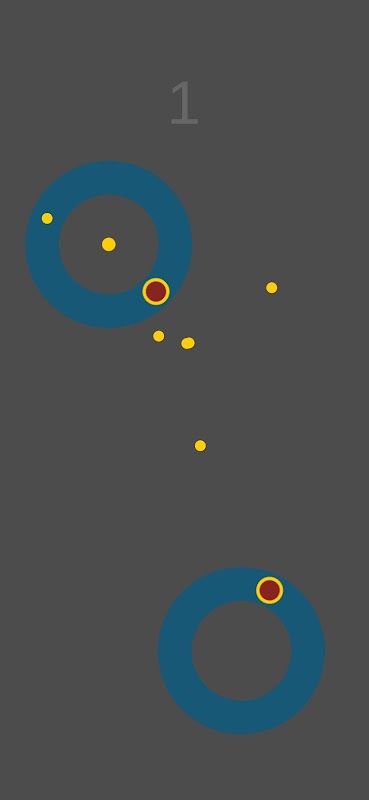 Wild Circle is a fun endless arcade game in which you have to play as a rotating orange rectangle with rounded corners moving from side to side. Tap the screen in time to change the direction of movement of your character. Blue discs with red bold dots from which you will need to dodge will fly towards you. If you touch the red dot, the game is over and you have to start all over again.