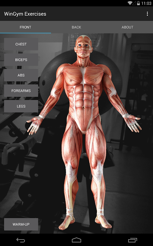 การออกกำลังกาย WinGym เป็น app ออกกำลังกายออกกำลังกายง่ายๆที่คุณสามารถหา 134 การออกกำลังกายที่มีภาพถ่ายและคำแนะนำ! การออกกำลังกายโดยแบ่งเป็นกลุ่มกล้ามเนื้อดังนั้นคุณจะไม่พบปัญหาใด ๆ กับการทำงานร่วมกับแอพพลิเคของเรา นอกจากนี้เรายังมีข้อมูลวอร์มพื้นฐานในการเตรียมความพร้อมตัวเองให้ออกกำลังกายในโรงยิม