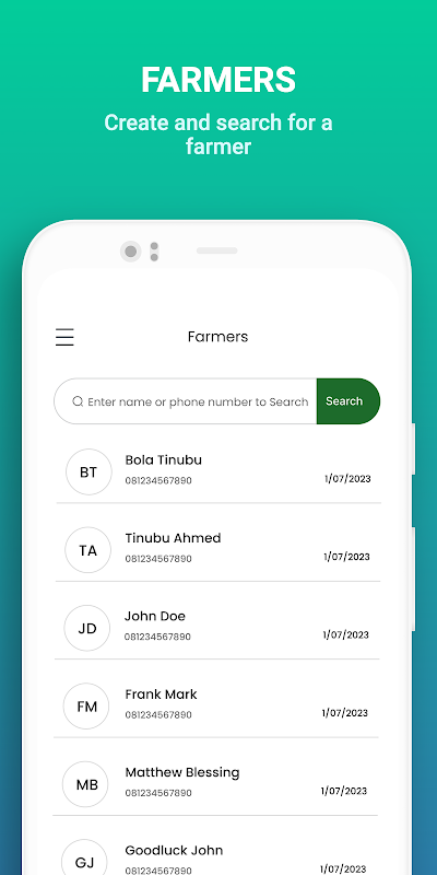 Click on farmers and enter the details of the farmer to pull them up