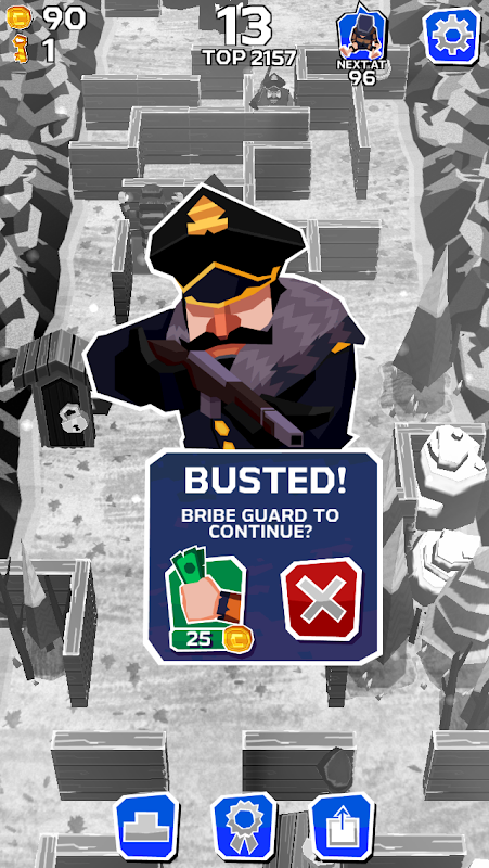 Avoid being seen by the guards, attack them by surprise or bribe them with money you find on the way. Escape through the endless barricades and UNLOCK new playable characters with special skills!