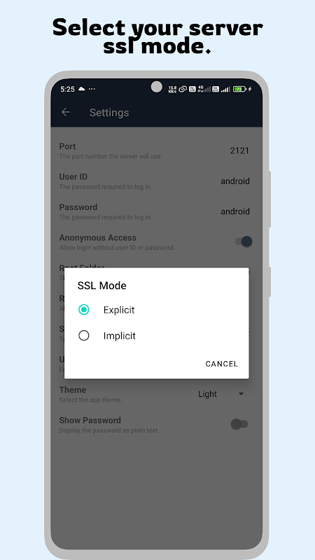 2. เปิดแอปเซิร์ฟเวอร์ FTP ไร้สายและเริ่มต้นเซิร์ฟเวอร์