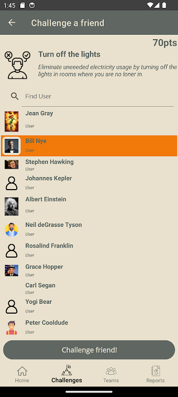 โดยไม่ทำให้ผู้ใช้สามารถสร้างความท้าทายให้ชุมชนของตนละเว้นจากกิจกรรมบางอย่างโดยสมัครใจ เช่น การอนุรักษ์พลังงานโดยการปิดไฟเป็นเวลาหนึ่งวัน ด้วยการมุ่งเน้นไปที่การกระทำที่สอดคล้องกับชุมชนท้องถิ่น ผู้ใช้สามารถทำให้เกิดการเปลี่ยนแปลงที่จับต้องได้ ในขณะที่เรียนรู้วิธีปฏิบัติในการลดการปล่อยก๊าซคาร์บอนไดออกไซด์ผ่านนิสัยในชีวิตประจำวัน