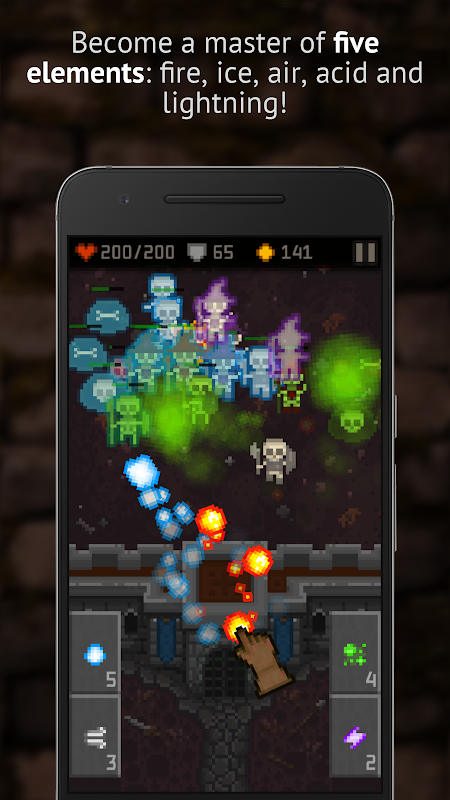 Defend your fort by destroying skeletons with the magic of the 5 elements!
