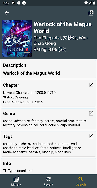 Search for all popular and all know novels. Use advanced search to find a webnovel by the genre and tag.