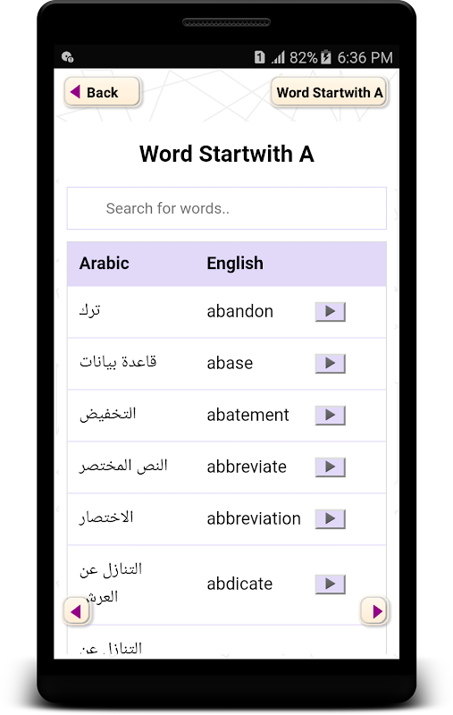 There are more than 13000+ english to arabic words. All these words are very important for daily english and various certification program like IELTS, GRE, GMAT etc. Arabic to english meaning will help you to arabic language translation.