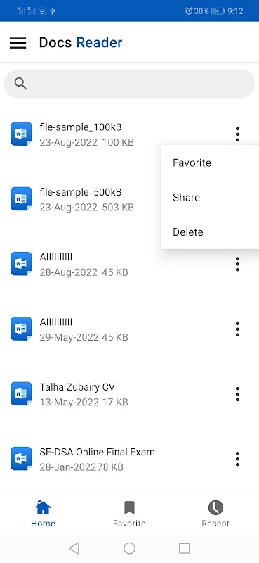 ในแอพนี้คุณสามารถอ่านไฟล์คำใดก็ได้ หากคุณมีไฟล์จำนวนมาก คุณสามารถค้นหาไฟล์คำที่ต้องการได้ในแถบค้นหา คุณสามารถลบไฟล์ได้อย่างถาวร คุณยังสามารถเลือกไฟล์ที่ชื่นชอบและไม่ชอบได้อีกด้วย