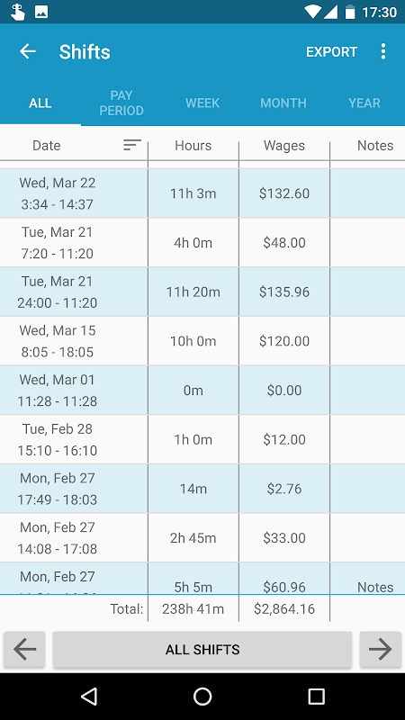 ★ดูชั่วโมงของคุณในหลากหลายวิธีเช่นสัปดาห์, เดือน, ระยะเวลาการจ่ายเงินหรือการเปลี่ยนแปลงทั้งหมดของคุณในครั้งเดียว