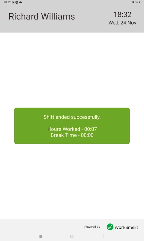 เมื่อบันทึกเวลาเริ่มต้นของกะแล้ว พนักงานสามารถสิ้นสุดกะหรือบันทึกเวลาพักได้
