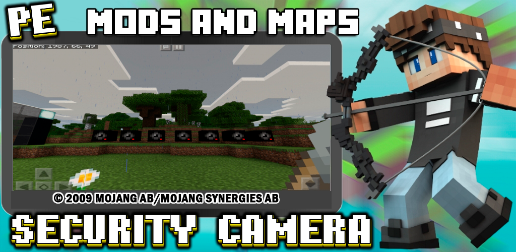 This is a pe working security cameras mod and map that adds working security cameras and spy skins. This add-on will transform your craft blocks world into safety pixel world. This command block creation pixel blocks map creates working security Cameras in miecraft using tags and name commands. This world allows you to use up to 7 security Cameras which are fully functional and you can place wherever you want. This world creates working security Cameras in Minecraft using command blocks. Also inside this app you will find a Camouflage Doors Mod. This pe mod adds different custom doors and custom trapdoors with vanilla pixel blocks. This addon for miencraft pe will change the textures of the doors, in order to make them look like other blocks. So if you want to make your house like a secret and safe bunker this mod will help you with this.