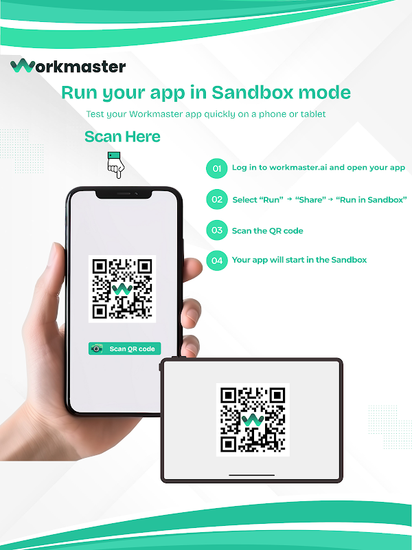 ไม่ว่าคุณจะสร้างแอปเพื่อธุรกิจ เพิ่มประสิทธิภาพการทำงาน หรือสร้างการมีส่วนร่วมกับลูกค้า Workmaster Sandbox ช่วยให้คุณดูตัวอย่าง ตรวจสอบ และปรับแต่งแอปของคุณได้อย่างง่ายดายก่อนเผยแพร่สู่กลุ่มเป้าหมาย