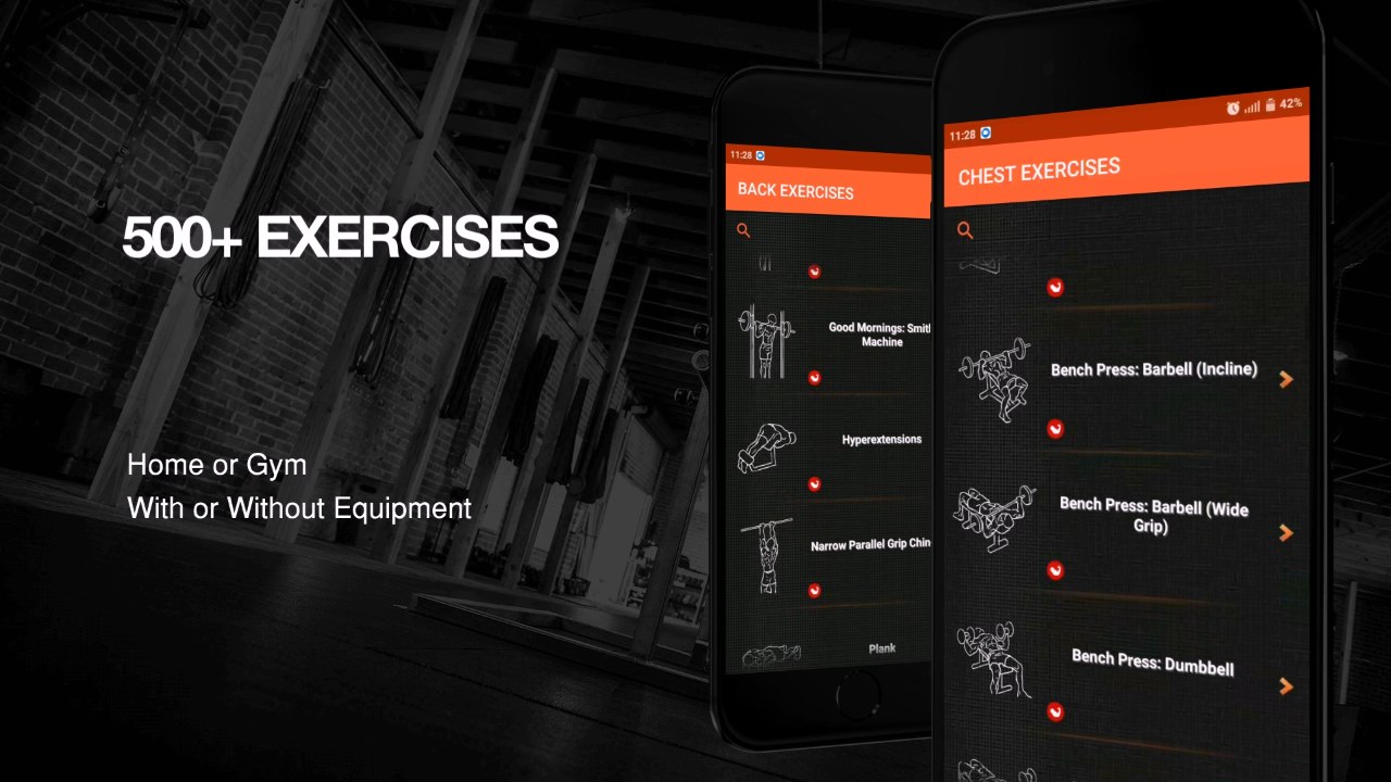 (Workout App has more then 500+ Exercises for Chest, Legs, Shoulder, Back... with detailed descriptions)