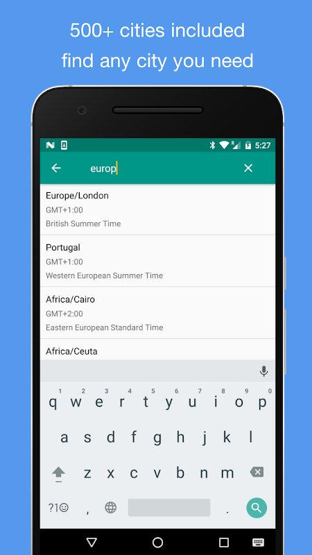 Search timezones with city or country - 500+ cities supported.