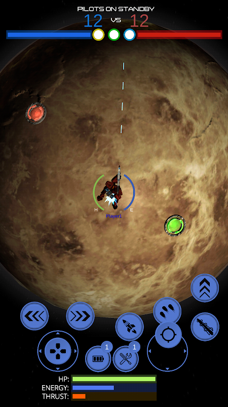 In multiplayer mode you fight against other players in 1v1, 2v2 or 3v3 PVP battle. Capture satellites. Destroy enemy towers. Use different kinds of weapons. Choose from different kinds of spacecrafts or mechs. You can win the battle by destroying the enemy base, or by destroying enemy spacecrafts untill all reserve pilots 12 of them are depleted. You may also win the battle by capturing satellites. You must maintain possession of those satellites for a period of time to win. The more satellites your team captured the the less time it takes to win the battle.