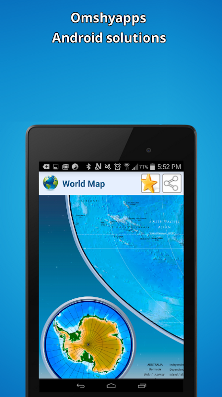 โปรแกรมแผนที่โลกนำเสนอแผนที่ของโลกในความละเอียดขนาดใหญ่ที่ให้ความรู้คุณสามารถค้นหาแต่ละประเทศทั่วโลก คุณสามารถตรวจสอบพรมแดนของประเทศใด ๆแผนที่ไม่จำเป็นต้องเชื่อมต่ออินเทอร์เน็ตหรือจีพีเอสแผนที่จะช่วยให้นักเรียนในการเรียนภูมิศาสตร์