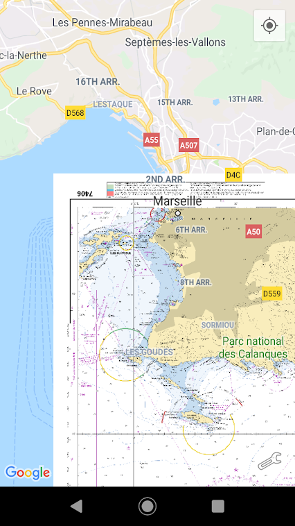 This app is designed to be used with real accurate maps (sea maps, hiking maps, or any feature map with correct scale). You maps needs to be accurate and oriented north (if not you should rotate it before importing).