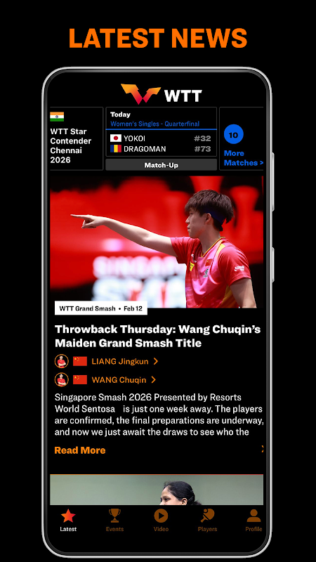 ยินดีต้อนรับสู่แอป WTT อย่างเป็นทางการและสุดยอดบ้านของเทเบิลเทนนิส