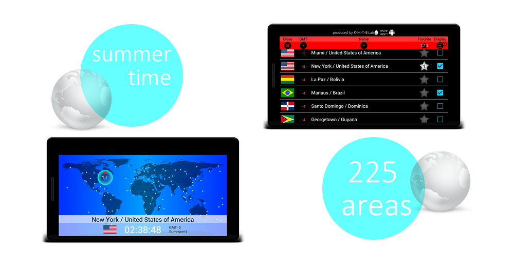 จำนวนภูมิภาคของโลกนาฬิกาโลกเวลาแผนที่สามารถแสดงเวลาเป็น 225 ตำแหน่ง