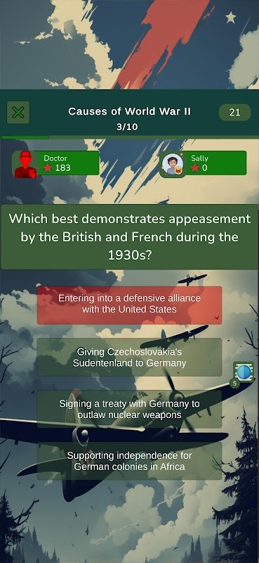 **แบบทดสอบความรู้สงครามโลกครั้งที่ 2** คือแอปตอบคำถามสงครามโลกครั้งที่ 2 ที่ดีที่สุด ที่จะท้าทายความคิดของคุณด้วยคำถามกว่า 500 ข้อ ครอบคลุมประวัติศาสตร์การทหาร ผู้นำ การรบ อาวุธ และเหตุการณ์สำคัญระดับโลกตั้งแต่ปี 1939 ถึง 1945