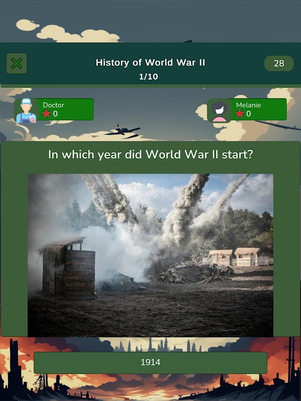 ย้อนเวลากลับไปและรำลึกถึงช่วงเวลาสำคัญของสงครามโลกครั้งที่ 2 ด้วยเกมตอบคำถามแบบผู้เล่นหลายคนที่สมจริงอย่าง "World War 2 Knowledge Quiz" เข้าร่วมการเดินทางที่น่าตื่นเต้นผ่านเหตุการณ์ การต่อสู้ และบุคคลสำคัญที่สุดในยุคประวัติศาสตร์นี้ ท้าทายเพื่อนของคุณหรือแข่งขันกันทั่วโลกเพื่อพิสูจน์ความเชี่ยวชาญด้านความรู้เกี่ยวกับสงครามโลกครั้งที่ 2 ของคุณ