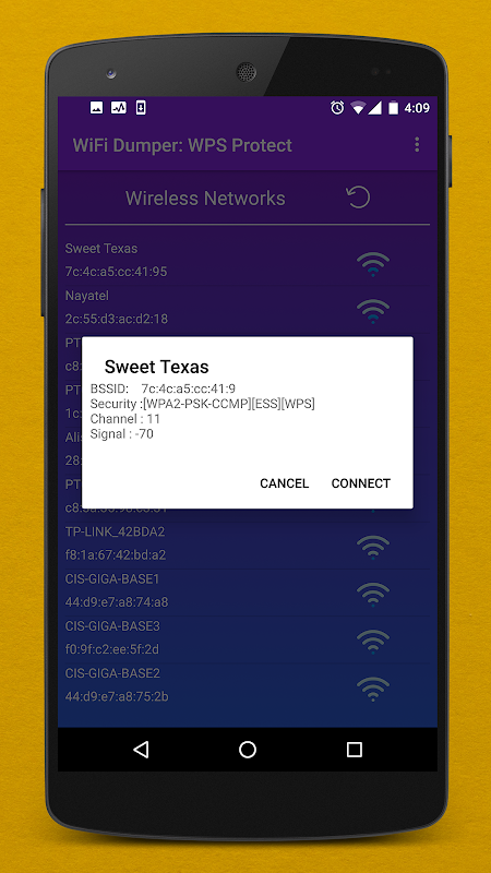 This WiFi Dumper WPS Protect (WPS Connect) App offer you to easily and without much effort connect to WiFi routers that have the WPS protocol enabled. With the help of this incredibly helpful and practical wifi dumper you will be able to search and connect to WPS enabled Wi-Fi routers which have a vulnerability of the WPS by using algorithms to connect to the WiFi WPS routers. To connect to the WIFI network you should know the WPS Pin. The App is only intended for you own use at your home/office for your own network. and connect using WPS connection. you can check WPS settings in router settings