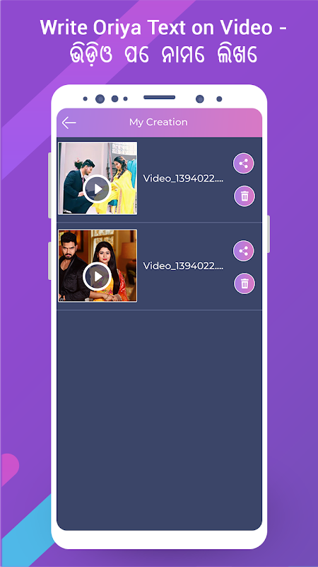 Write Oriya Text on Video - Video Par Naam Likhe apps is the best app to add Oriya text, artworks and stickers on photos.Write Oriya Text on Video - Video Par Naam Likhe app allow you add romantic Oriya text and Oriya poetry on your gallery videos or on given rich collection of HD and stylish Background.this app allows you to write Oriya text on videos. Write your own shayari, poetry, message, status etc on videos and share them with your friends.