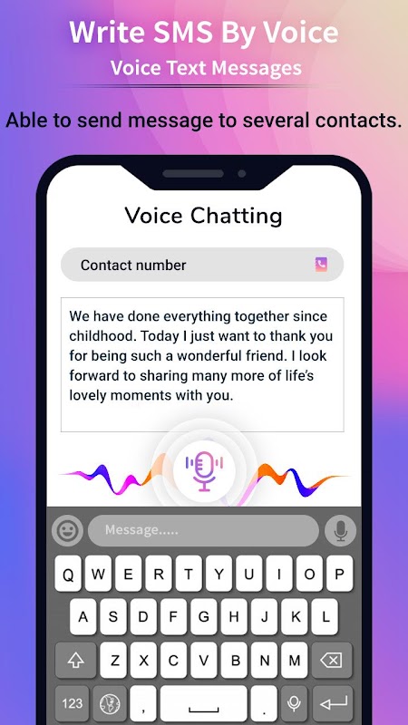 เขียน SMS ด้วยเสียงทำให้โทรศัพท์มือถือพิมพ์ได้ง่ายและทำให้ชีวิตของเราราบรื่นขึ้นด้วย สิ่งที่คุณต้องทำคือมุ่งเน้นไปที่ SMS / ข้อความและคำศัพท์ คุณแค่หลีกเลี่ยงความคิดเกี่ยวกับคีย์บอร์ด ใน Write SMS ด้วยเสียงคุณไม่จำเป็นต้องพิมพ์บนคีย์บอร์ด เพียงใช้แอพที่ยอดเยี่ยมนี้พูดและรับ SMS ของคุณพิมพ์โดยอัตโนมัติ ดังนั้นมันจึงทำหน้าที่เป็นคีย์บอร์ดพิมพ์ดีดเสียง