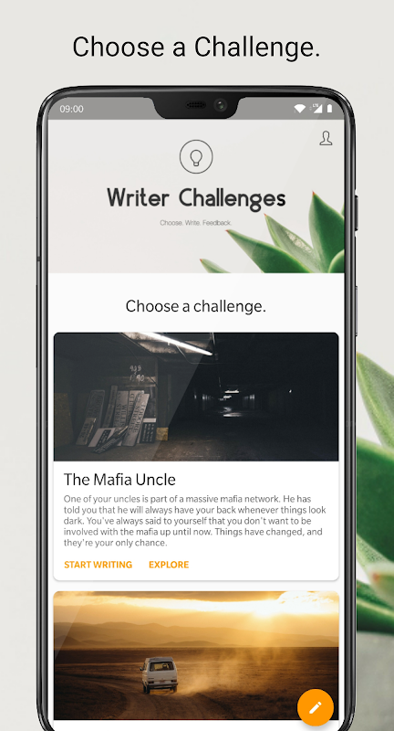 ค้นหาความท้าทายใหม่ ๆ ทุกสัปดาห์จะนำออกเท้าที่ดีที่สุดของคุณในการเขียนเรื่องสั้น ออกเสียงลงคะแนนในระยะสั้นเรื่องอื่น ๆ จากชุมชนและเป็นส่วนหนึ่งของการตัดสินใจ "นักเขียนของสัปดาห์ที่" ผู้ชนะจะได้รับรุ่นฟรีของ app "นักเขียนเครื่องมือ" ที่ยอดเยี่ยมของเรา