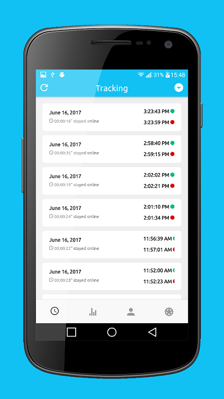 Wtrack provides you the daily, weekly and montly online duration statistics.