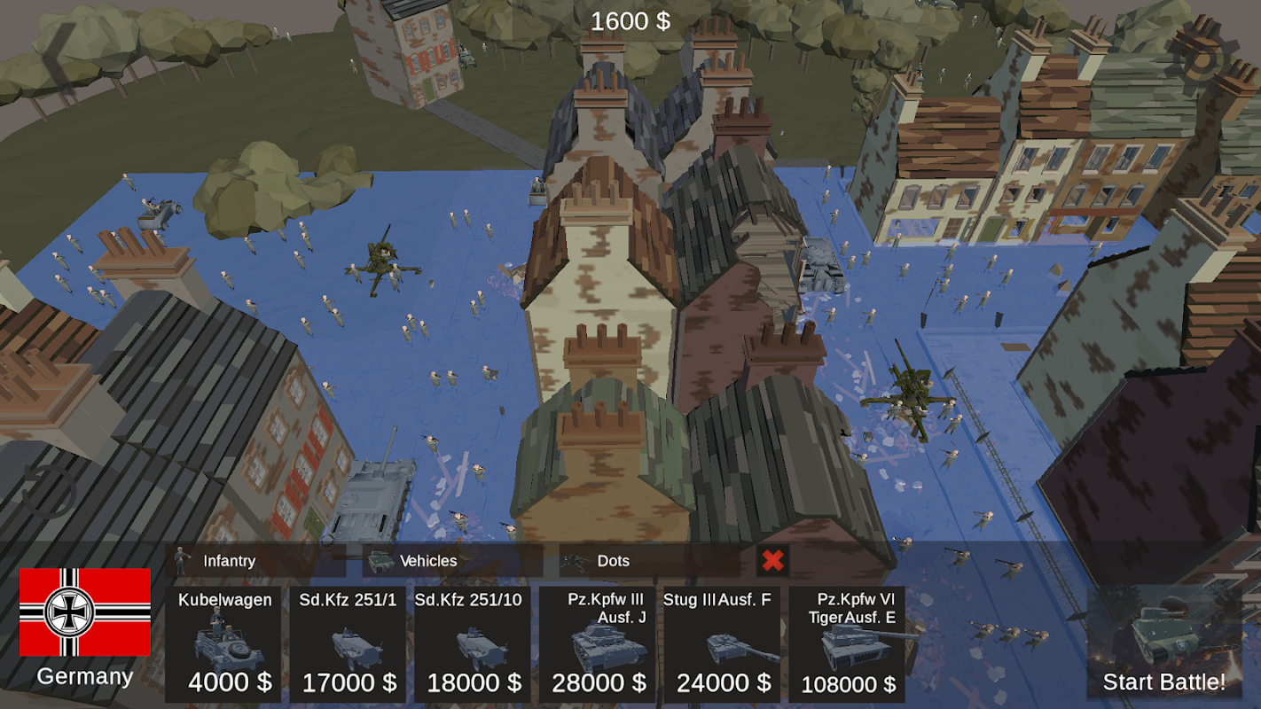 ก้าวเข้าสู่สมรภูมิรบอันยิ่งใหญ่ของสงครามโลกครั้งที่ 2 กับ WW2 Battle Simulator! สัมผัสประสบการณ์แคมเปญที่สมจริงในบทบาทของสหรัฐอเมริกาและเยอรมนี ซึ่งแต่ละแคมเปญมีภารกิจที่แตกต่างกันถึง 3 ภารกิจ การอัปเดตในอนาคตจะนำเสนอแคมเปญและหน่วยรบของสหภาพโซเวียต สหราชอาณาจักร ญี่ปุ่น และฝรั่งเศส ใช้โหมดแซนด์บ็อกซ์เพื่อสร้างการต่อสู้ของคุณเองบนแผนที่จากภารกิจแคมเปญ โดยมีหน่วยรบเฉพาะ 25 หน่วยให้เลือกใช้ในปัจจุบัน วางแผน วางหน่วยรบของคุณ และเฝ้าดูการปะทะกันในการต่อสู้สไตล์ RTS ที่สมจริง ย้อนรำลึกประวัติศาสตร์และสั่งการกองทัพของคุณให้ได้รับชัยชนะในสงคราม!