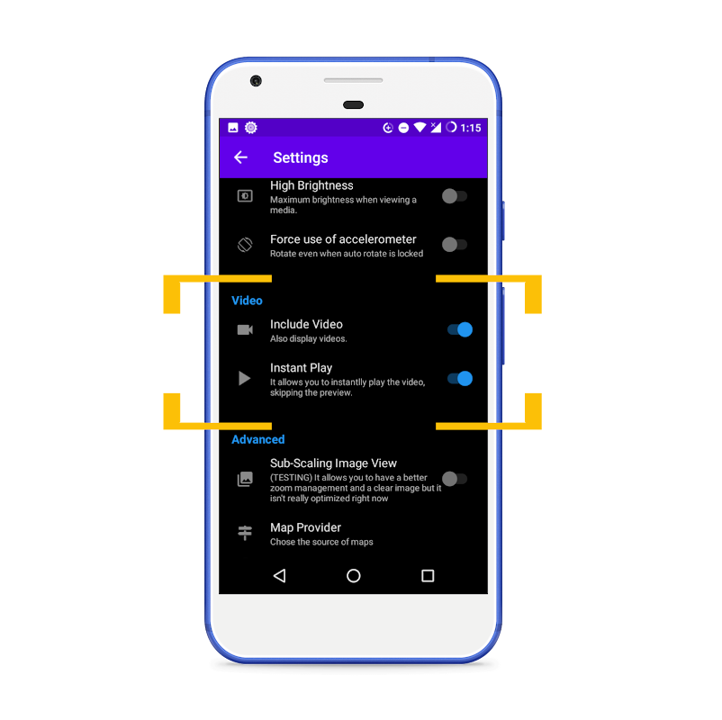 Spend less time managing and more time enjoying pictures. With HD Gallery you will be able to display images to fill your entire screen. You can use the pinch-to-zoom gesture or zoom buttons to get more detailed view.