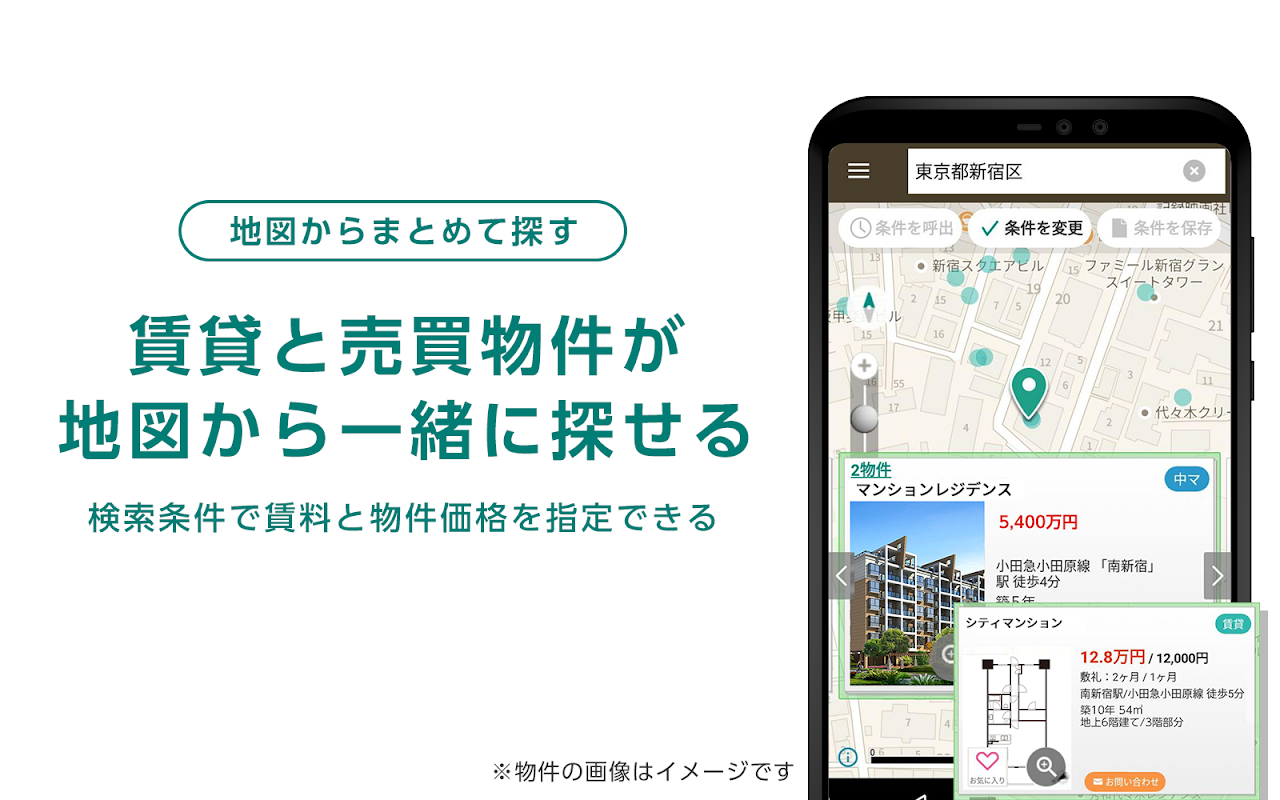 ยาฮู! Real Estate แอปค้นหาทรัพย์สินที่ดำเนินการโดย LINE Yahoo! ช่วยให้คุณสามารถเพิ่มทรัพย์สินที่คุณชื่นชอบลงในรายการโปรดได้ด้วยการแตะเพียงครั้งเดียว และแสดงบนแผนที่!