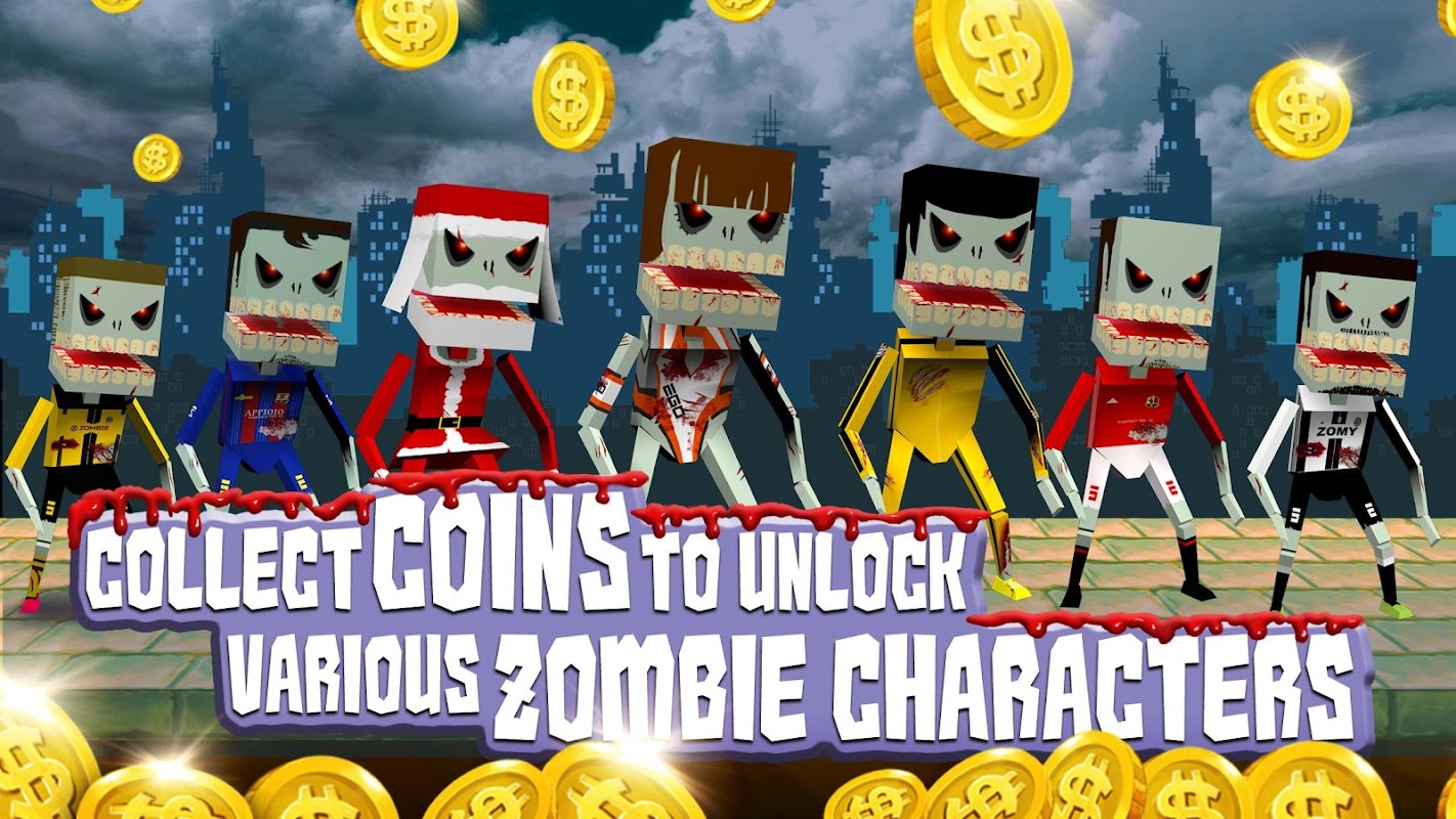 - Collect coins to unlock various zombie characters