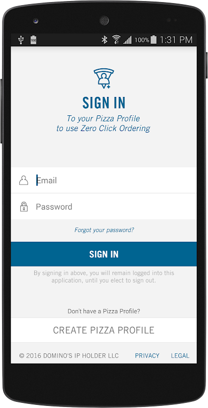 ให้แน่ใจว่าคุณมีโปรไฟล์พิซซ่าและการสั่งซื้อง่าย