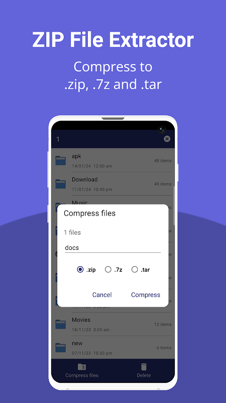 Zip File Extractor เป็นแอปที่ทรงพลังและใช้งานง่ายสำหรับการแยกหรือเปิดไฟล์รูปแบบต่างๆ มากมาย Zip File Viewer ยังบีบอัดไฟล์เดียวหรือหลายไฟล์ลงในไฟล์เก็บถาวร .ZIP, .7Z หรือ .TAR