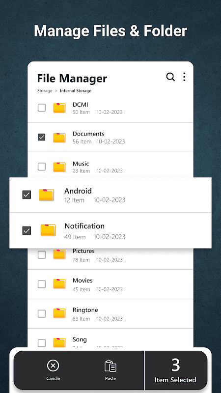 5. การจัดการไฟล์: แอพ Zip-UnZip Files & Compress มีระบบจัดการไฟล์ที่ใช้งานง่าย ช่วยให้คุณสามารถเรียกดู ลบ คัดลอก หรือย้ายไฟล์และโฟลเดอร์ภายในแอพ สิ่งนี้ช่วยให้คุณจัดระเบียบไฟล์บีบอัดได้อย่างมีประสิทธิภาพและทำให้พื้นที่จัดเก็บของคุณไม่รกรุงรัง