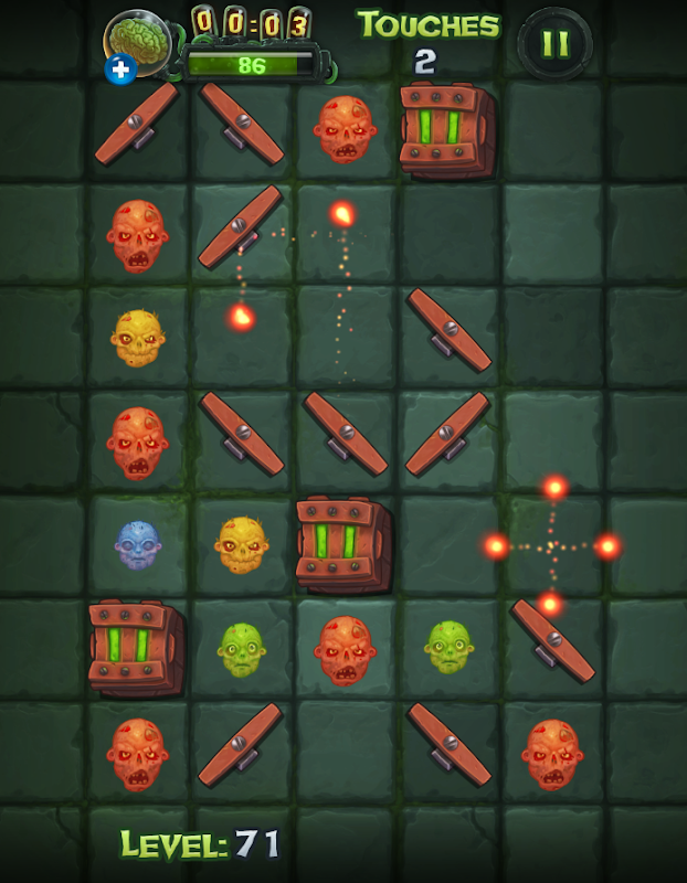 Arcade mode: simply touch the zombies head's to kill them or head changed the color, you need to clear the game board, and you'll will move to the next level. When the heads smashed, you get extra moves, try to smash as many goals in one move.