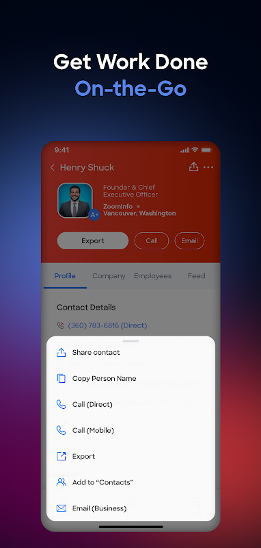 เชื่อมต่อกับผู้มีแนวโน้มจะเป็นลูกค้า ลีด และลูกค้าได้ทุกที่ด้วยแอป ZoomInfo