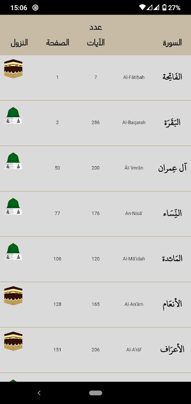 - The index includes the number of verses in each surah and whether it is Meccan or Medinan.