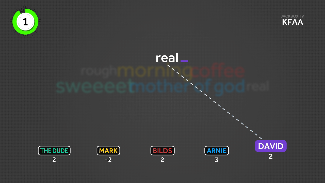 2) The hilarious bluffing game Fibbage XL (2-8 players), with 50% more questions added to the original hit game Fibbage.